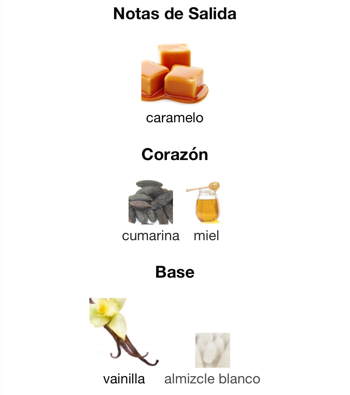 - Notas de corazón: cumarina, miel — un corazón suave y aterciopelado que aporta profundidad gourmand, con un dulzor elegante y reconfortante.
