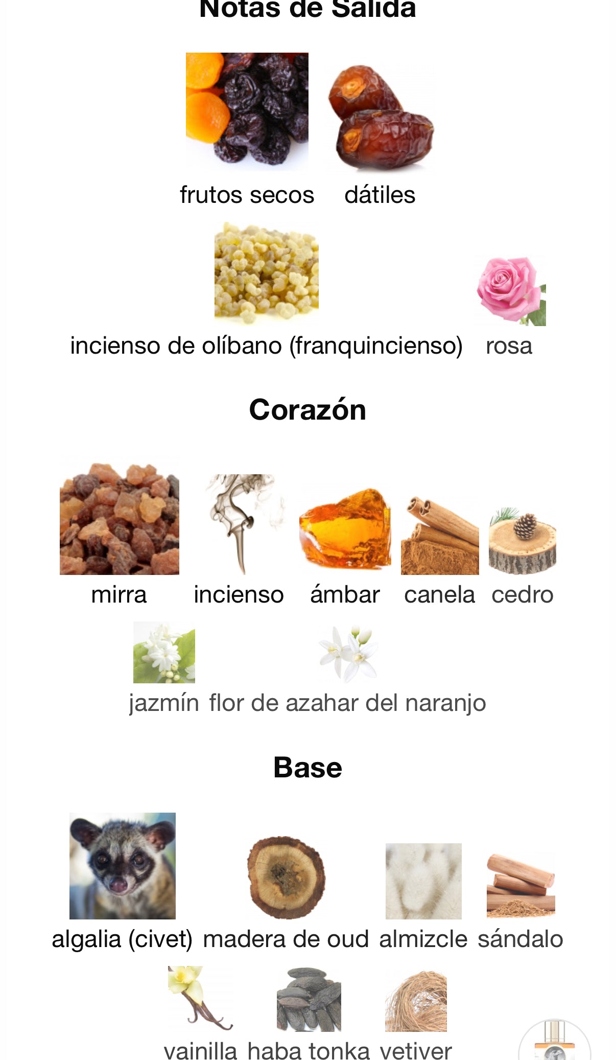 - Notas de salida: frutas secas, dátil, incienso, rosa — una apertura jugosa, luminosa y resinosamente intensa.