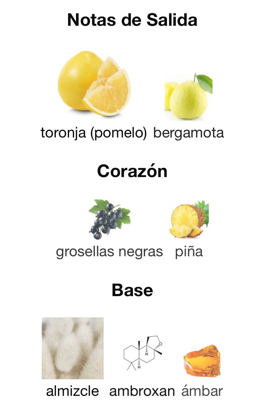 - Notas de salida: pomelo, bergamota — una apertura chispeante y luminosa que sacude los sentidos de inmediato.
