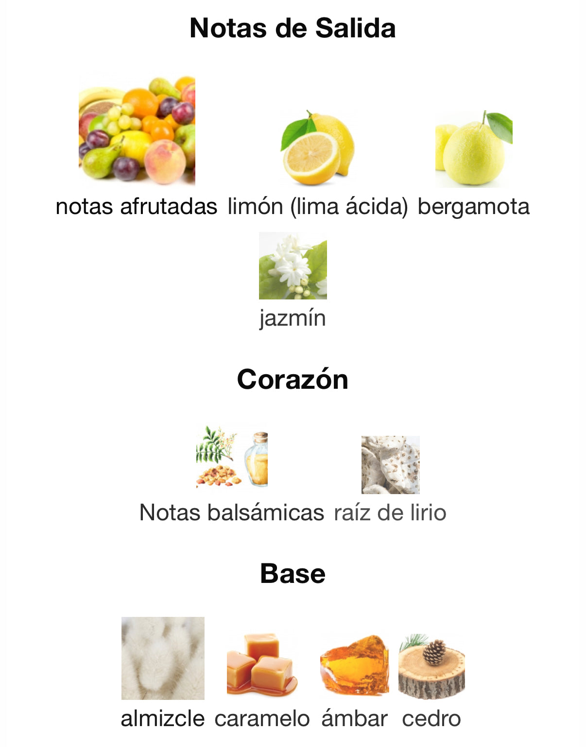 - Familia olfativa: Afrutada · Floral · Amaderada · Ámbar