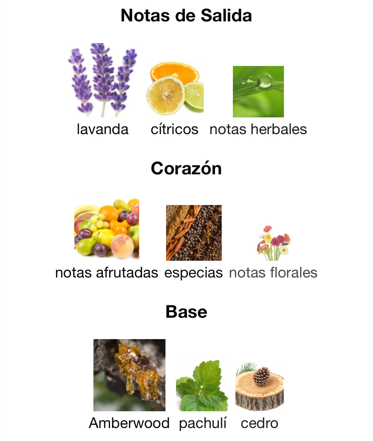 - Notas de salida: lavanda, cítricos, notas herbales — una apertura fresca, aromática y vibrante que despierta los sentidos desde el primer instante.