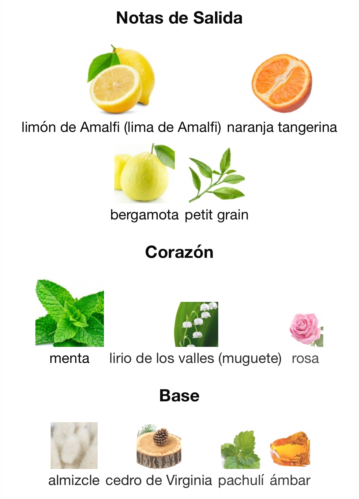 - Notas de salida: bergamota, mandarina, limón, petitgrain — una explosión cítrica y chispeante que refresca desde el primer instante.